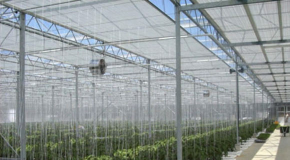 - トラスの上弦材または下弦材の横にコンパクトに折りたためるので影が少なく。